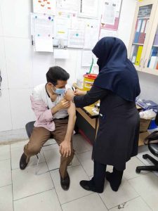 تزریق نوبت يادآور واكسن كوويد-19به كاركنان بيمارستان شهيد مصطفي خميني